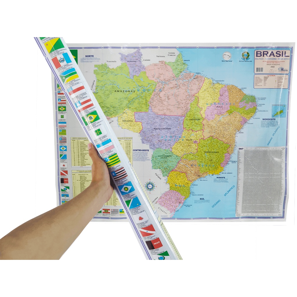 Mapa do Brasil Político Rodoviário e Estatístico Edição Atualizada Marcação Divisão Entre Estados 120x90 cm