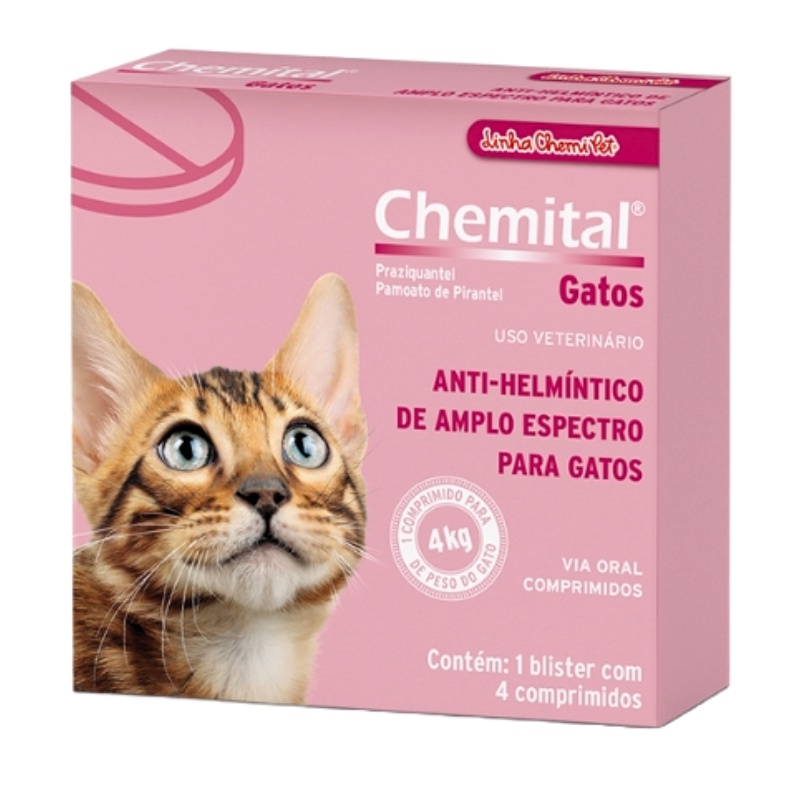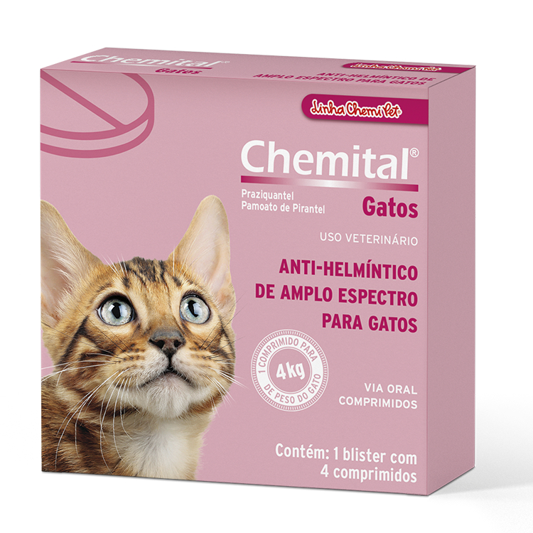 Vermifugo Chemitec Chemital Para Gatos 4 Comprimidos