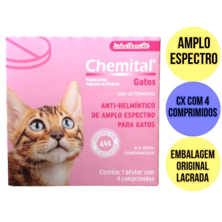 Verme Gato Vermífugo Chemital Gatos Com 4 Comprimidos
