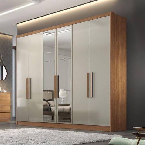 Guarda Roupa Casal com Espelho 6 Portas 6 Gavetas Cairo Novo Horizonte Cumaru