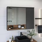 Armário Espelheira para Banheiro Cecília com 3 Portas e 1 Nicho Mel/Grafite