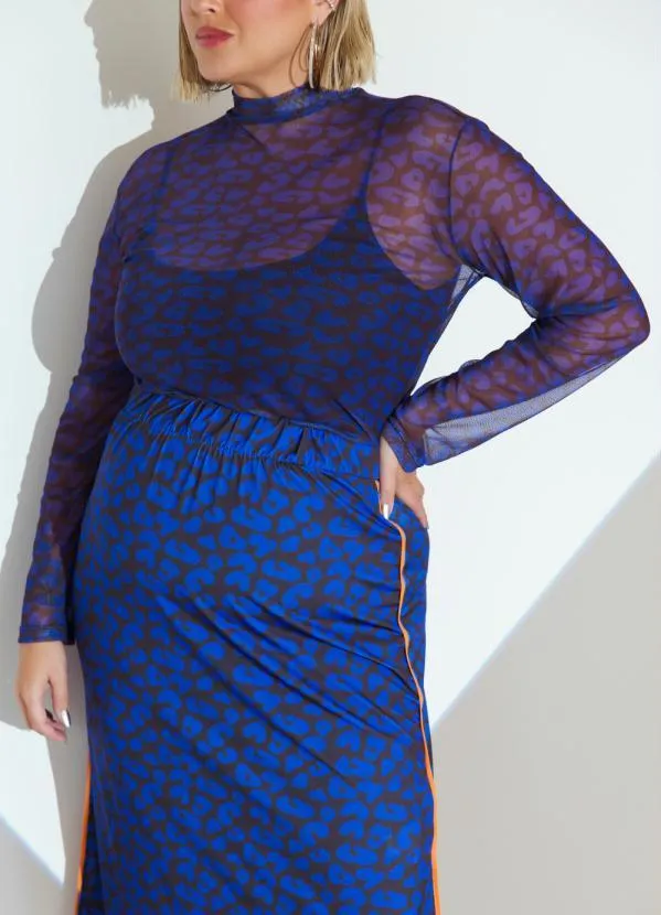 Quintess - Blusa Onça Marinho Segunda Pele em Tule