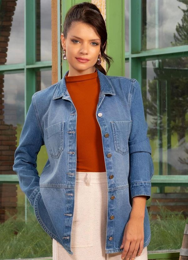Quintess - Jaqueta Jeans Médio com Bolsos