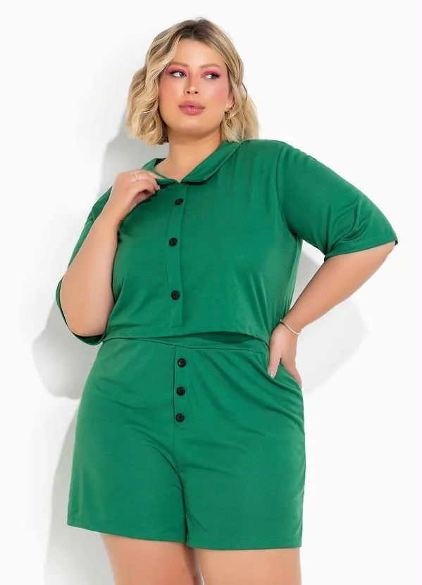 Marguerite - Conjunto Verde Bandeira Camisa e Short Plus Size