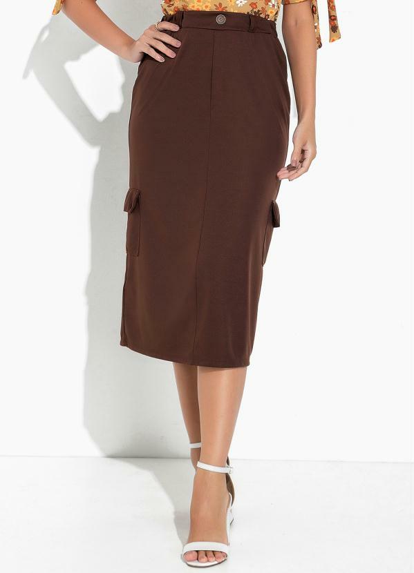 Rosalie - Saia Marrom com Bolsos Moda Evangélica