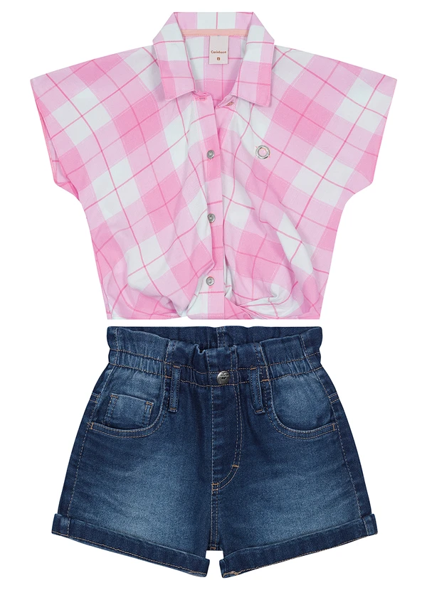 Carinhoso - Conjunto Xadrez com Jeans Menina Rosa