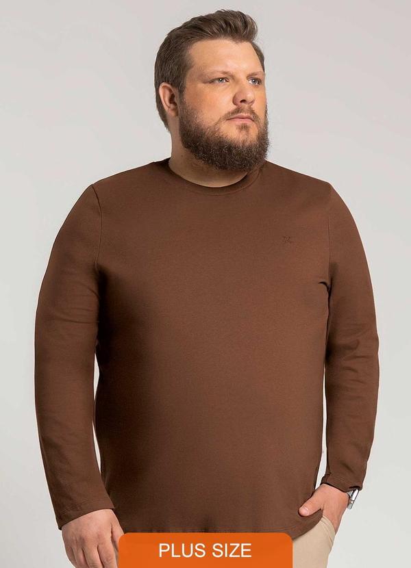 Exco - Camiseta de Manga Longa Plus Size Marrom