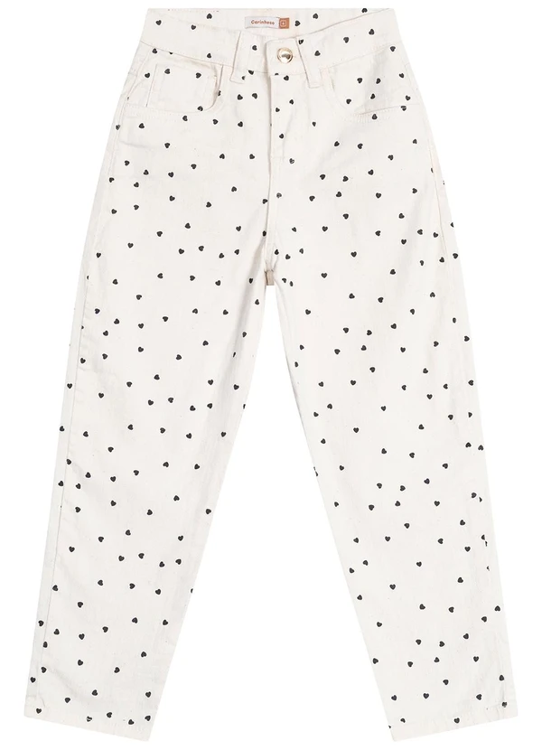 Carinhoso - Calça Mom Corações em Sarja Menina Bege