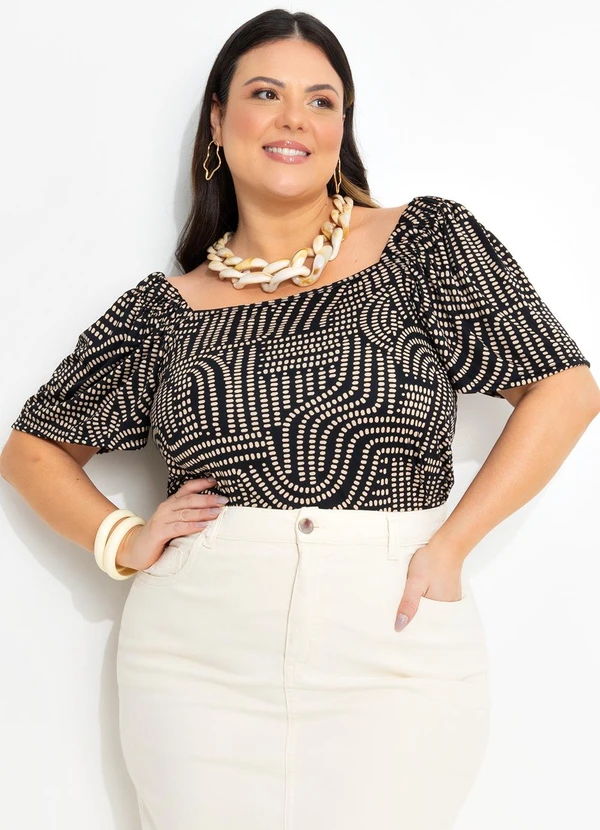 Marguerite - Blusa Poá Preto em Malha de Viscose