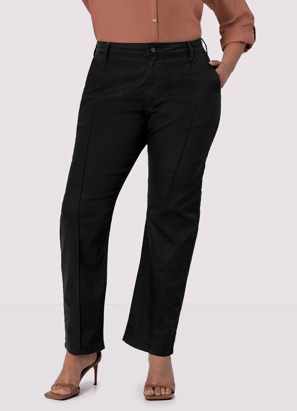 Lunender Mais Mulher - Calça Jeans Preta Plus Size Reta Não Desbota Preto