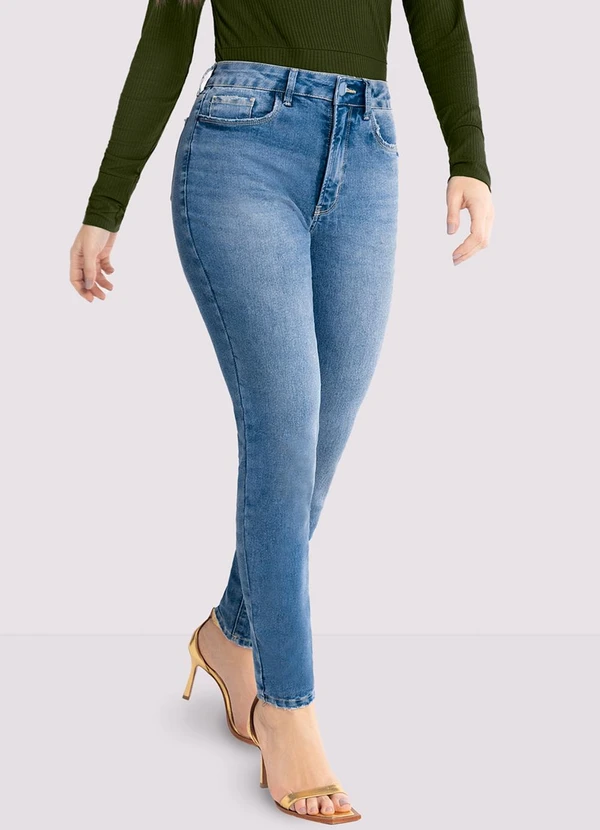 Lunender - Calça Jeans Cintura Alta Chapa Barriga Azul