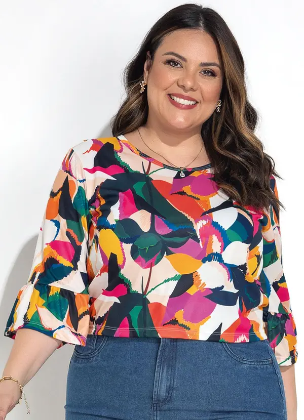Marguerite - Blusa Floral Vibrante em Malha Fria
