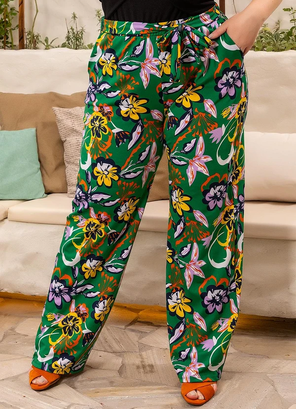 Marguerite - Calça Floral Verde em Poliflex