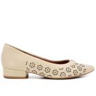 Scarpin Bege Salto Bloco Couro Laser - Usaflex