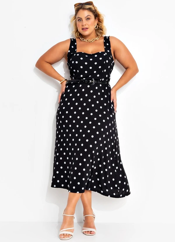 Marguerite - Vestido Poá Preto em Malha de Viscose
