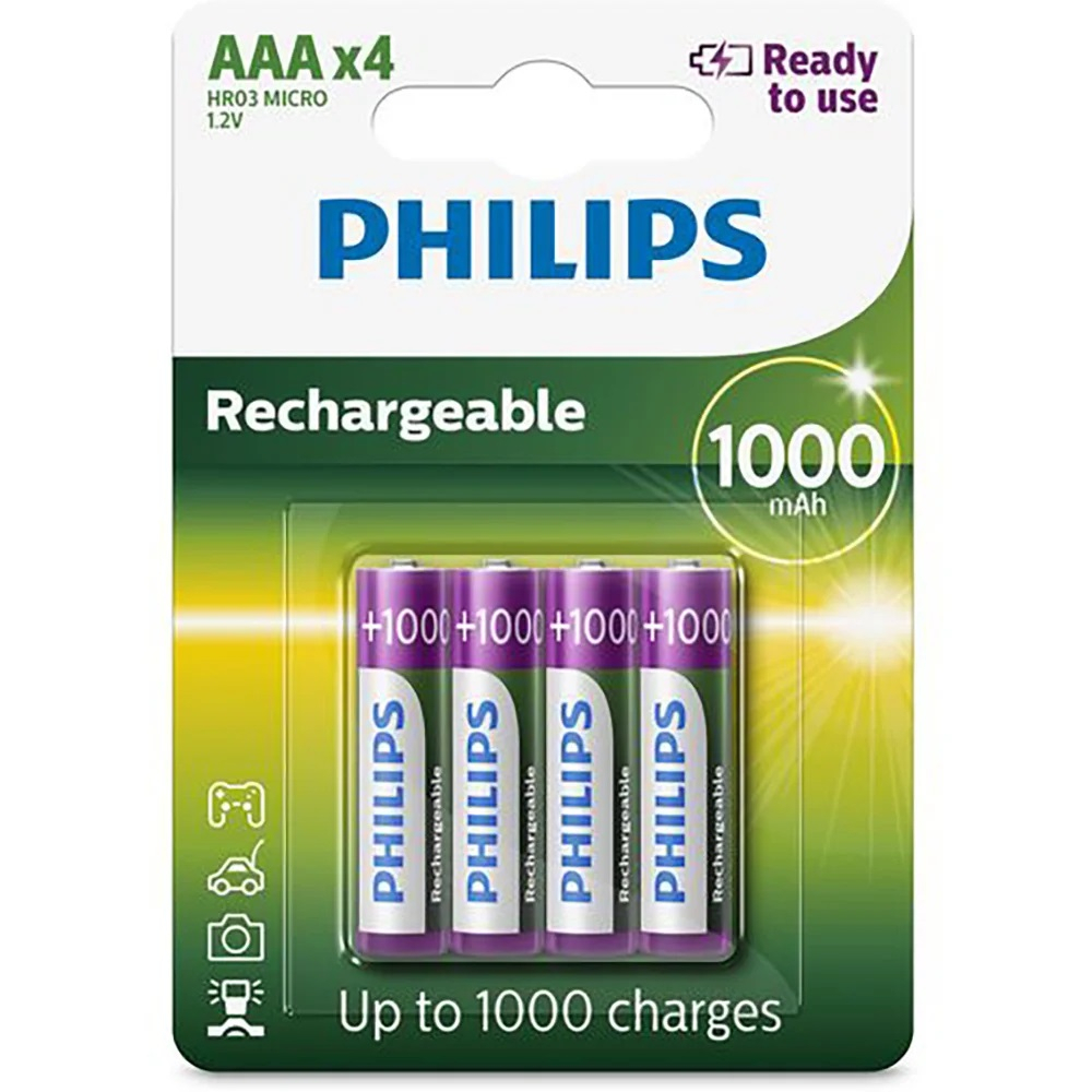Pilha Recarregável PHILIPS AAA 1000mah Palito Pacote Com 4 Unidades