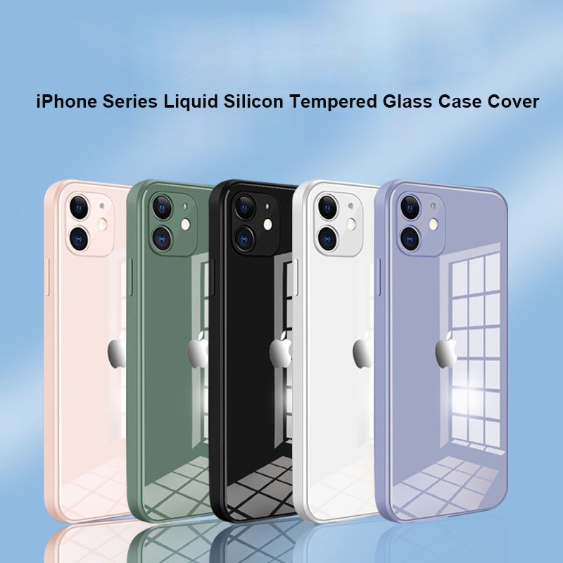 Capa De Silicone Líquido Borda Quadrada Vidro Resistente Para Iphone 12 11 Pro Max Xr Xs 7 8 Plus