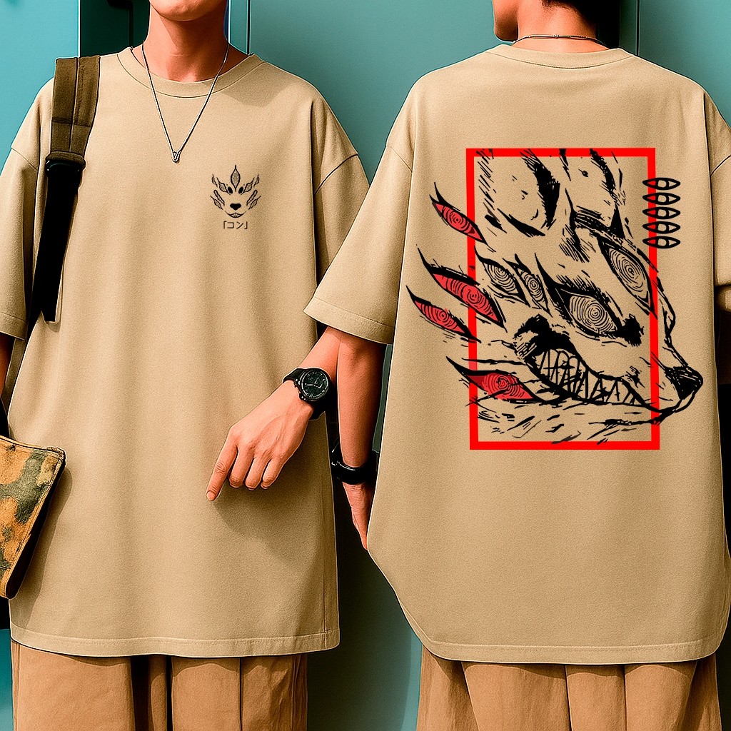 Camiseta Oversized Aki Fox Devil Chainsaw Man Anime Streetwear Camisa Unissex