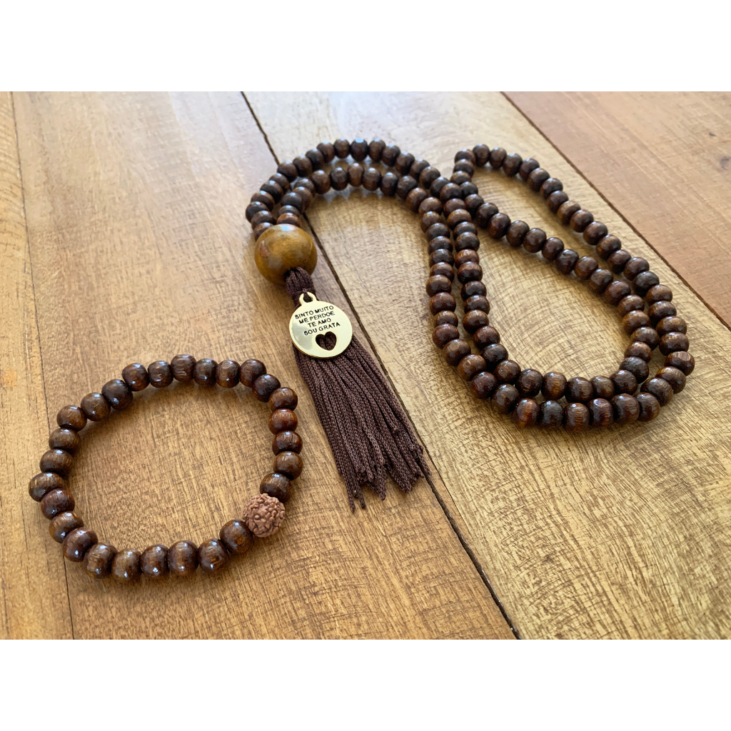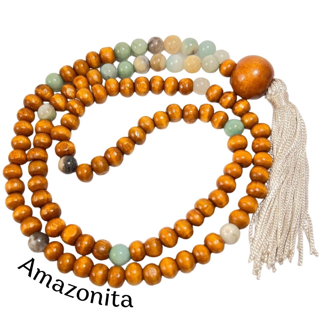Japamala 108 Contas Madeira com pedras naturais Ho'Oponopono