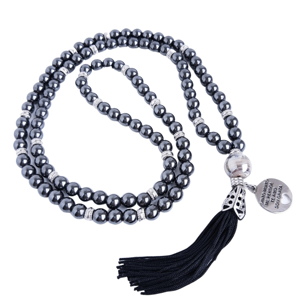 Japamala 108 contas em Pedra Natural Hematita e pingente Ho'oponopono
