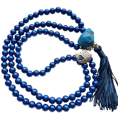 Japamala 108 contas perola abs azul com medalha ho'oponopono
