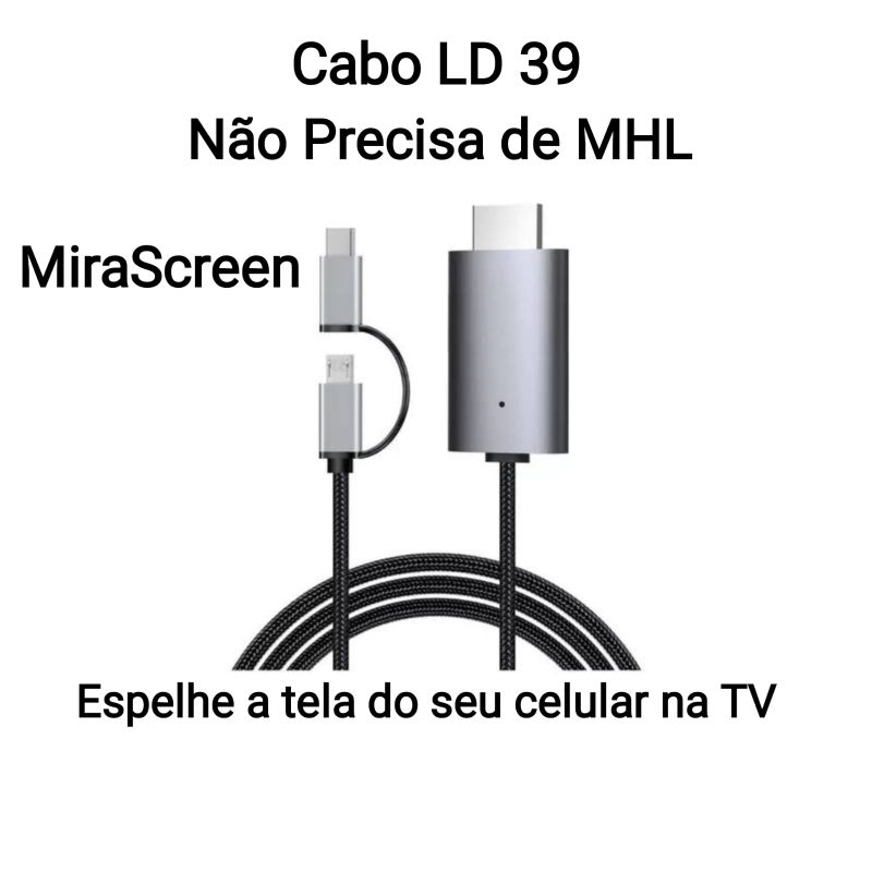 Cabo LD39 Cabo adaptador micro USB C LD39 Mirascreen Para Espelhar Celular na TV sem MHL