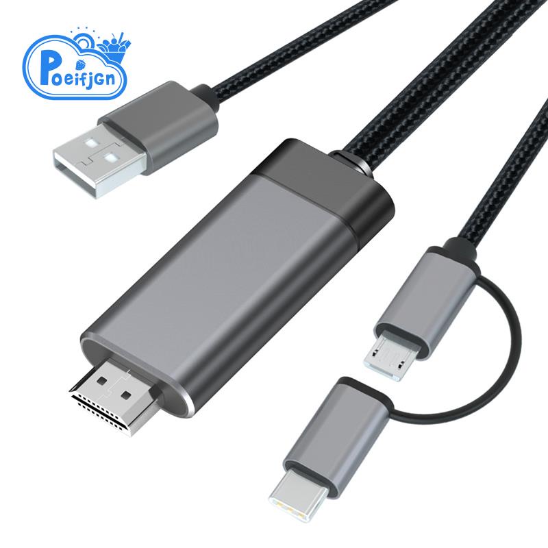 MiraScreen LD29 3-In-1 Type C/Micro-USB to HDMI Cable for Android Phone to HDMI Bluetooth HDTV Mirroring 1080P to HDMI Cable