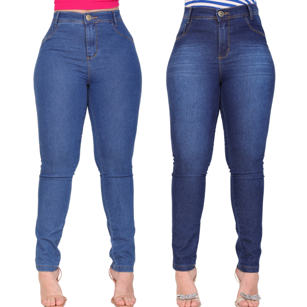 kit 2 Peças Calça Jeans Feminina Skinny Cintura Alta Com Lycra Empina Bumbum