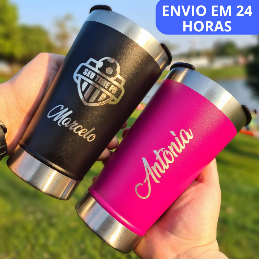 copo térmico 473ml a tampa com abridor personalizado com time e seu nome
