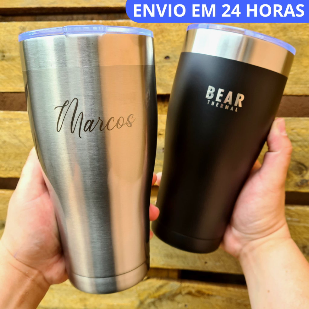 Copo Térmico com seu NOME personalizado BEAR THERMAL ORIGINAL, LEIA O ANUNCIO, com tampa e abridor 473ml parede dupla a vacuo 4 horas gelado 1 hora quente