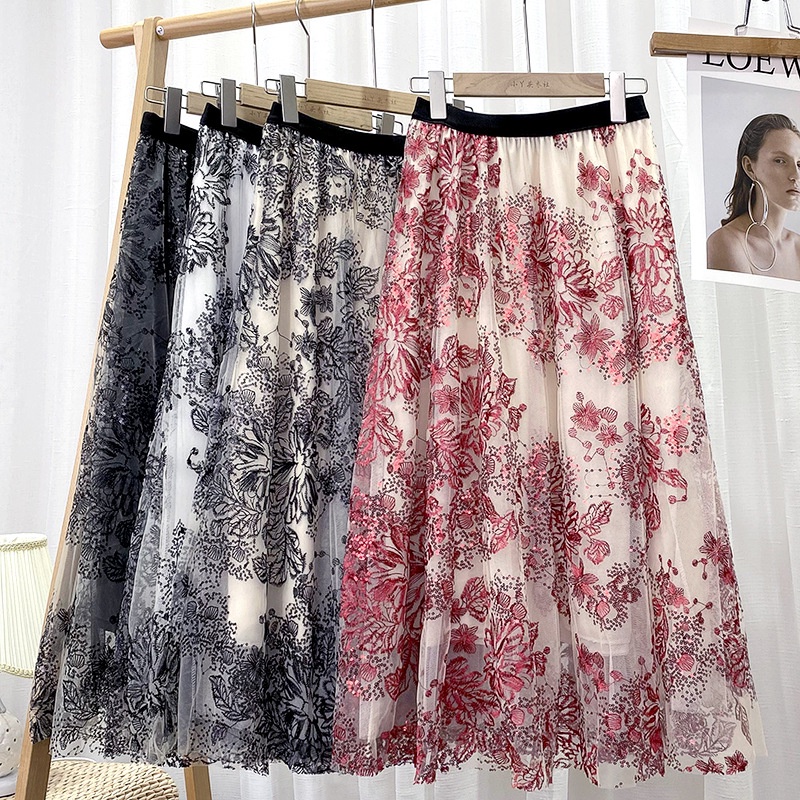 Fashion Flower Saia midi Feminina Cintura Alta Elástica Coreana Fina Em Linha A Plissada Longa Estampada Para Mulheres