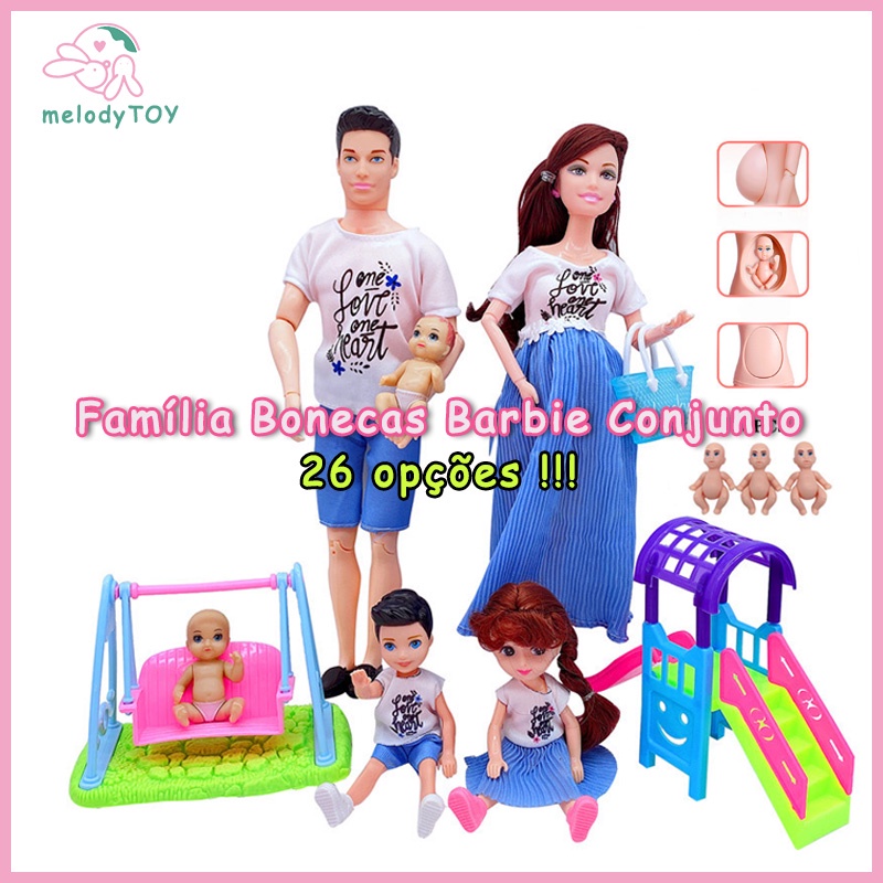 10 Peças Família Bonecas Barbie Conjunto Mulheres Grávidas Mamãe Bebê Crianças Brincar Casa Meninas Brinquedos