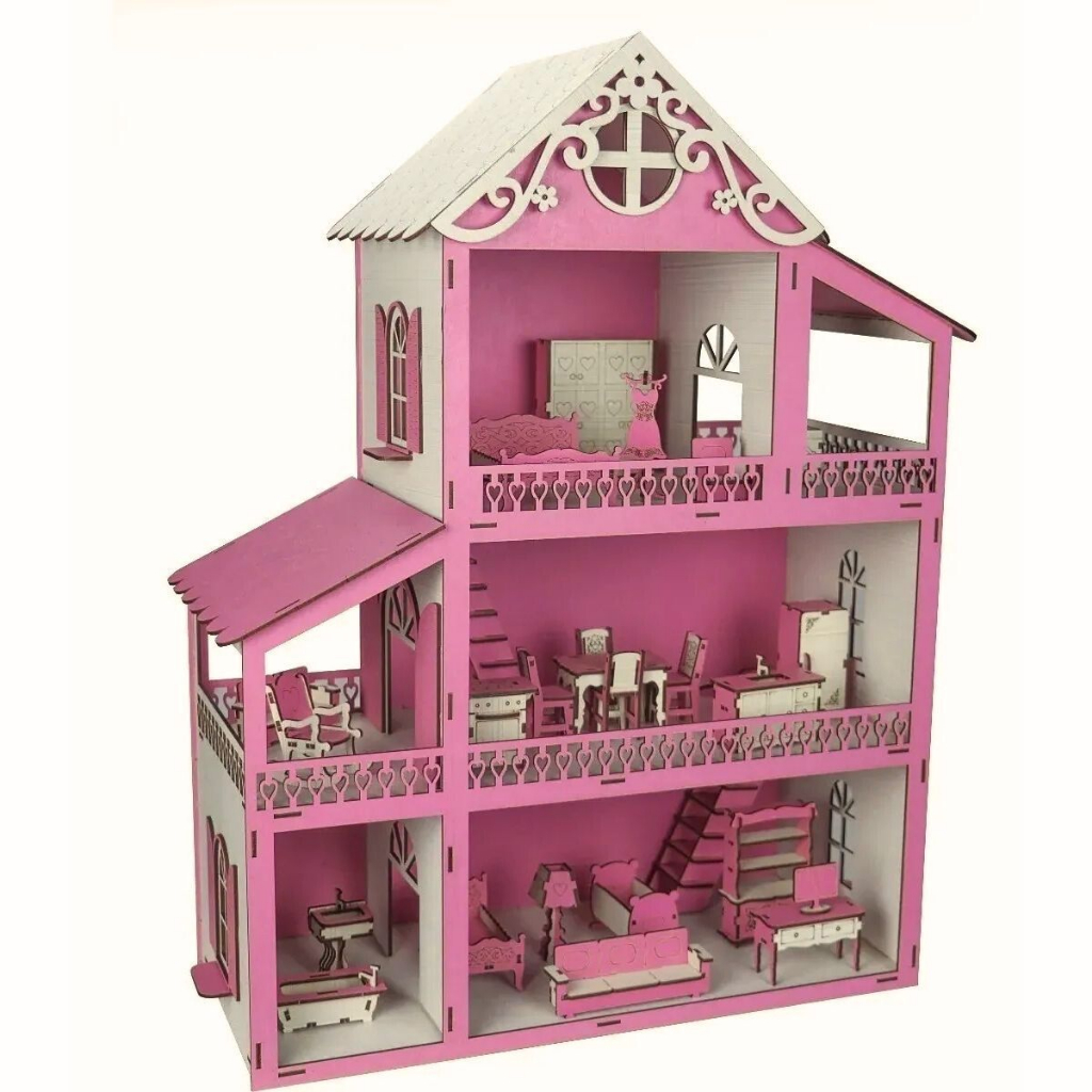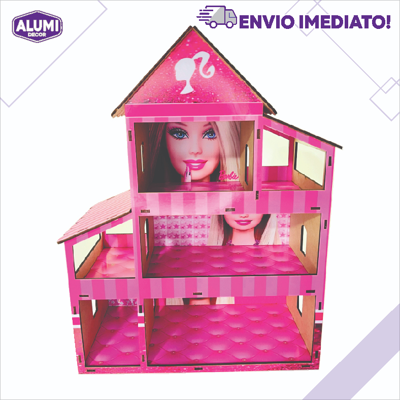 Casa Casinha de boneca MDF 2.8MM Adesivada - MONTADA - ROSA BARBIE