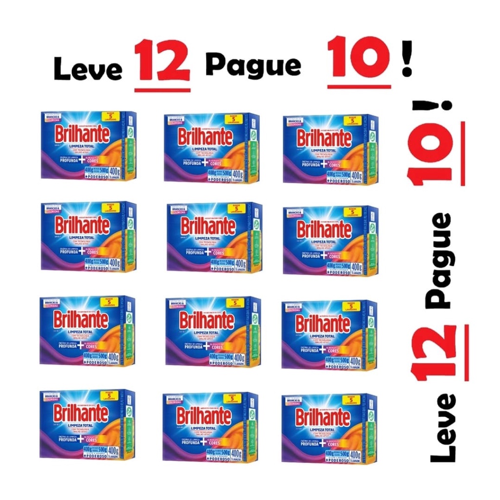 Kit 12 Caixas Sabão Em Pó Brilhante 400 Gramas Cada Atacado Promoção