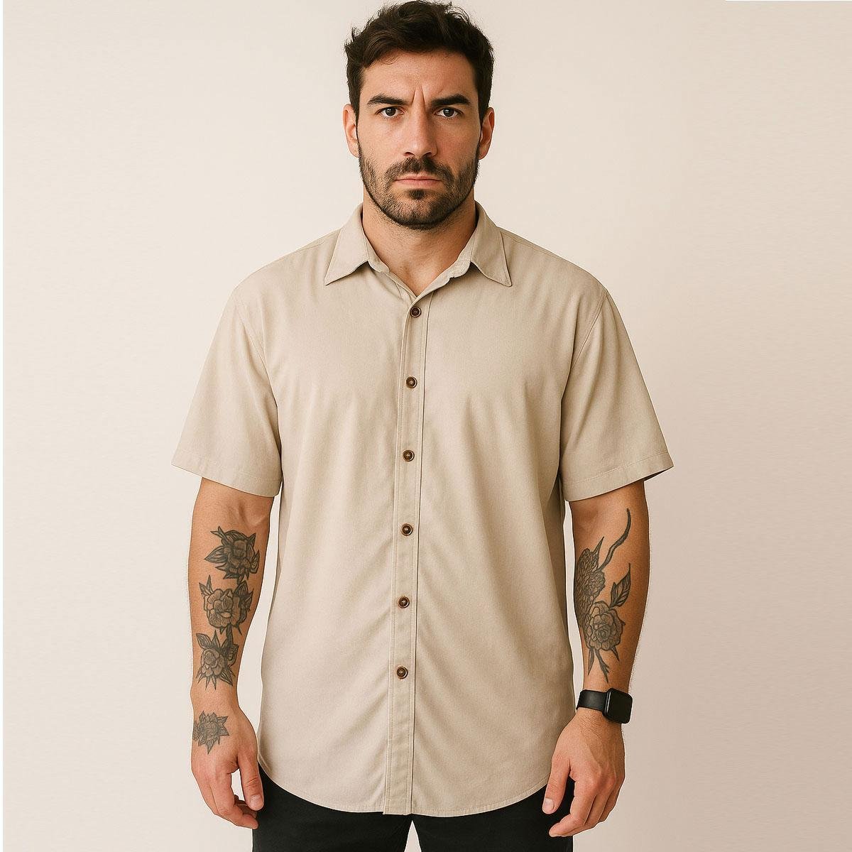 Camisa Masculina Manga Curta Social Lisa Viscose Unissex