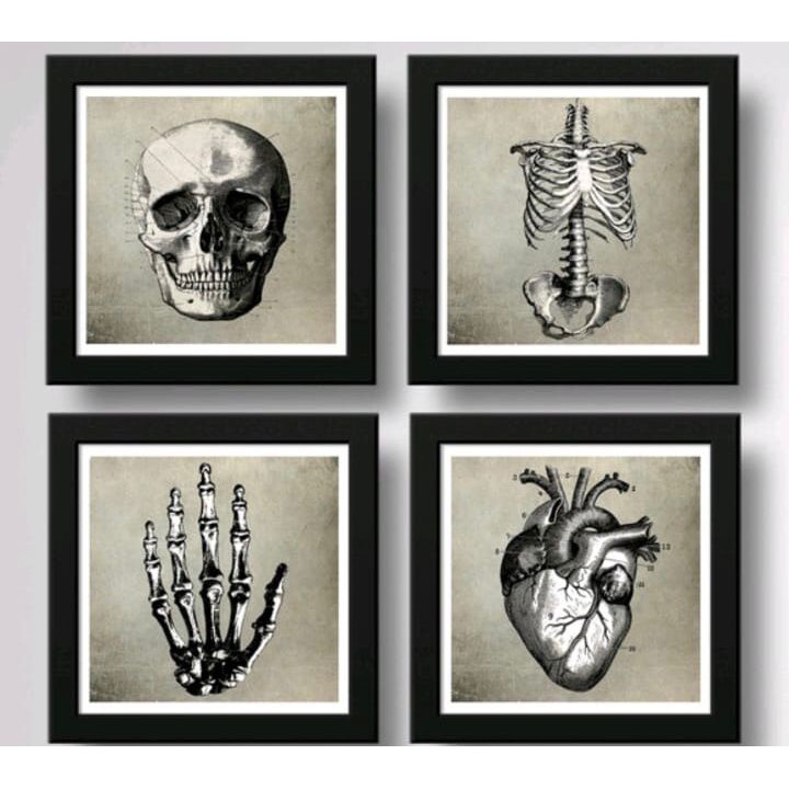 Kit 4 Quadro Decorativo Corpo Humano Anatomia Decoração Médico Preto e Branco - Painel Decoração
