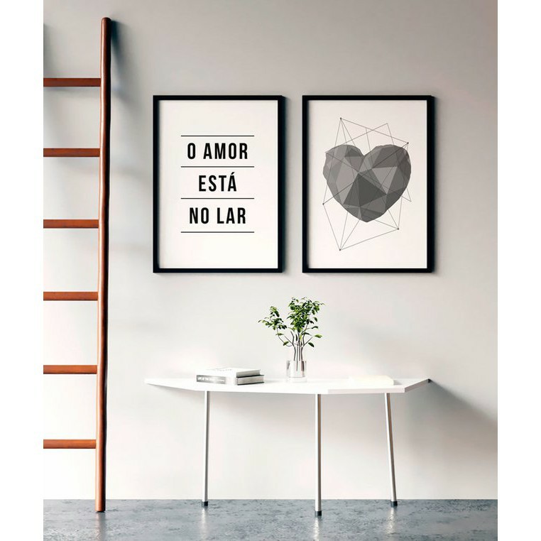 Kit 2 Peças Quadro Decorativo Frases O Amor está no Lar - Família Coração - Painel Decoração Preto MF