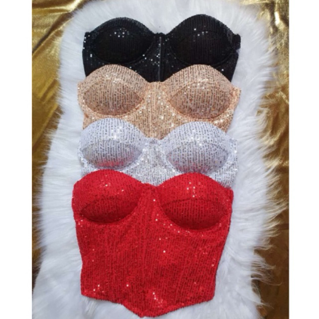 Blusa Cropped Tomara Que Caia Faixa Top Tendência Brilho Paetê Natal Final De Ano Com Bojo