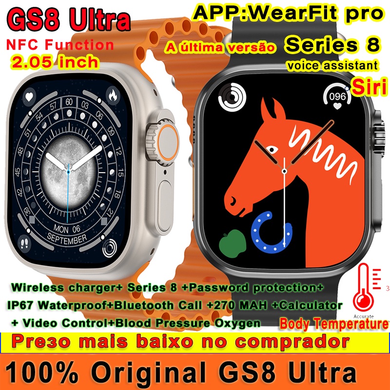 Relógio Original GS8 Ultra Smart Watch Série 45MM 8 NFC Temperatura Corporal Assistente De Voz Bluetooth Chamada Siri
