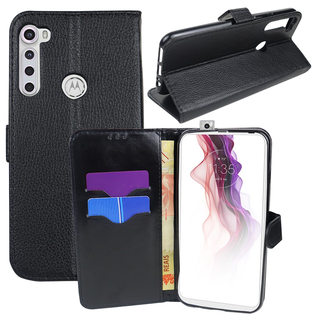 Capa Capinha Case Flip Carteira Couro Sintético PRETA Motorola Moto One Fusion Plus xt2067 (Tela 6.5)