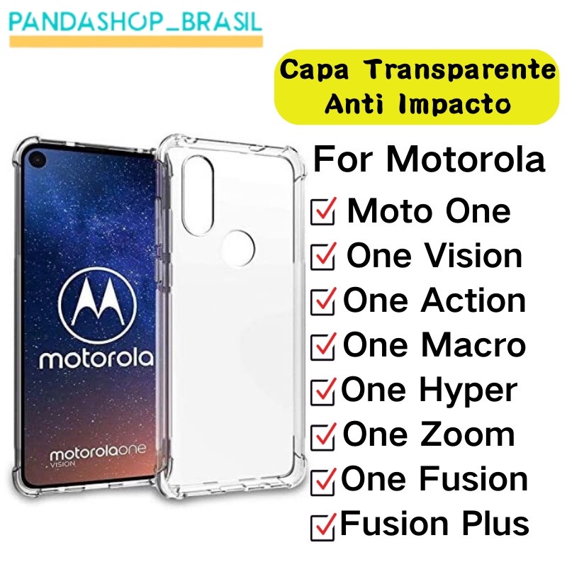 Capa Capinha Transparente Anti Impacto Para Motorola One / Vision / Action / Fusion / Hyper / Zoom / Macro Case Clear - Enviar Rapida
