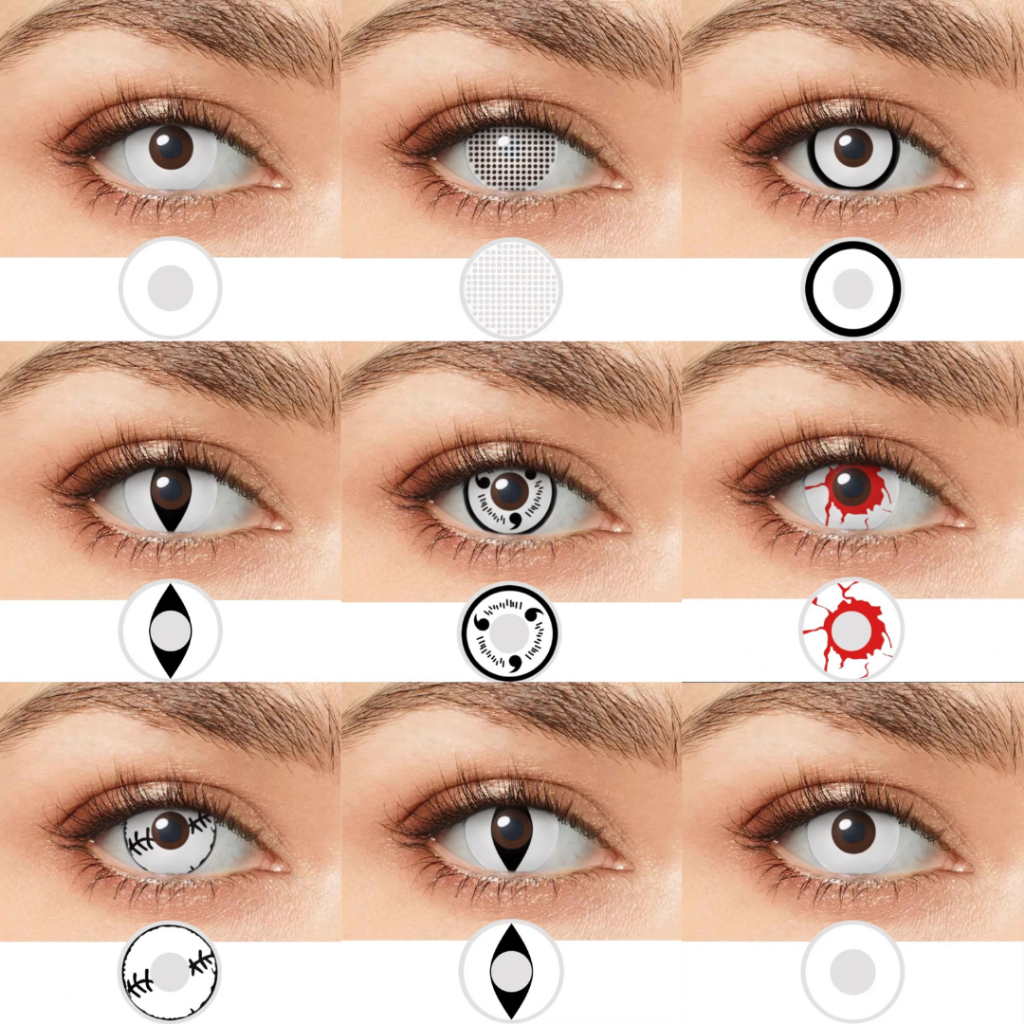 Lente de contato Branca No Brasil Halloween Cega Mesh zumbi A pronta entrega