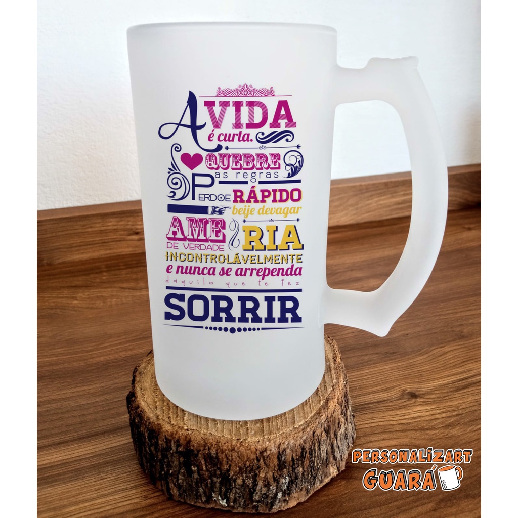 Caneca de CHOPP Cerveja Personalizada Vidro Jateada 500 ML