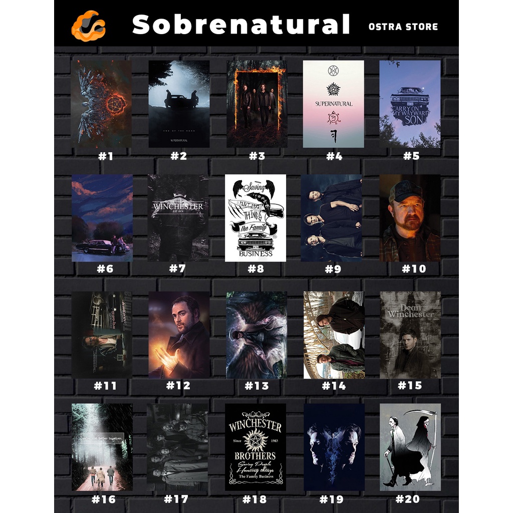 Sobrenatural 01 a 20 - Séries - Placa decorativa MDF - 14x20 - Quadro parede & decoração - Presente - série - supernatural - Dean - Sam - Winchester
