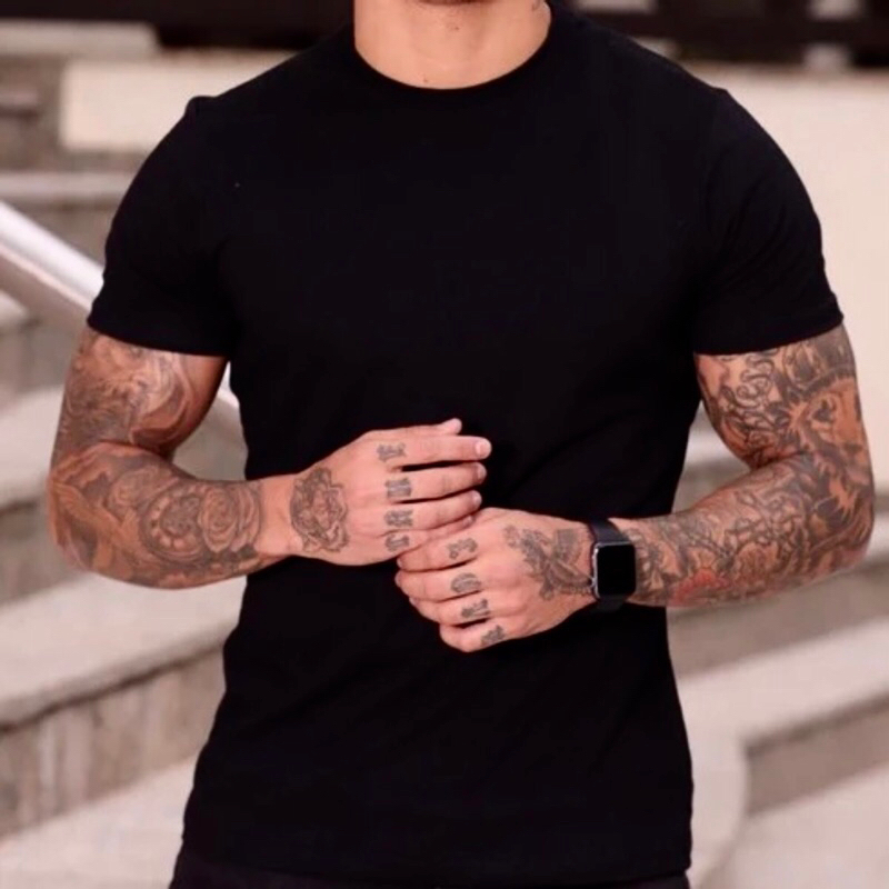 Camiseta Camisa Preta Masculina Básica Slim Lisa 100% Algodão Premium Fio 30.1 Penteada