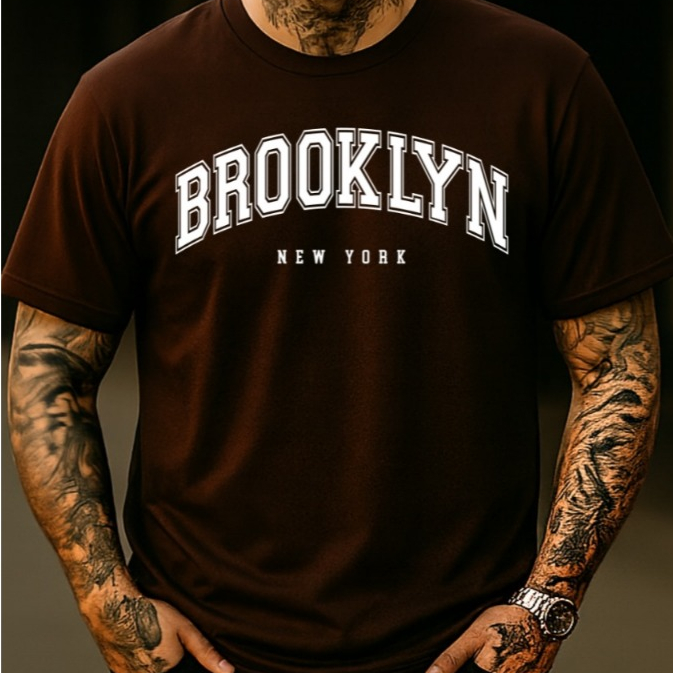 Camiseta Masculina PREMIUM Streetwear Camisa Estampada BROOKLYN 100% algodão Fio Penteado