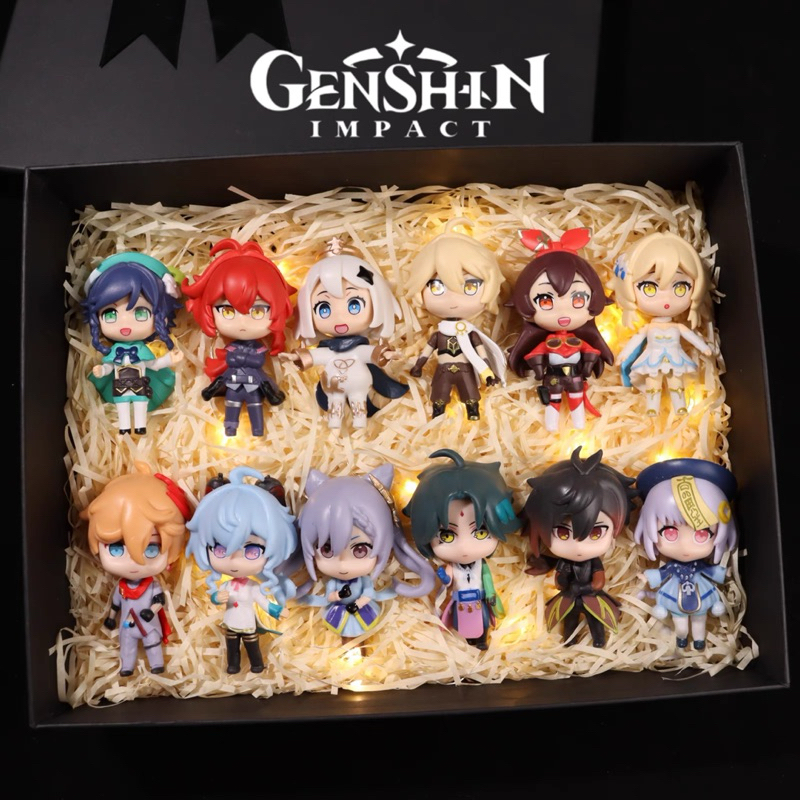 12 pçs/set Genshin Impact Anime Figura De Ação Jogo Dos Desenhos Animados Aether Paimon Klee Raiden Shogun Beelzebul Hu Tao Éter Lumine Barbatos Eula Keqing Qiqi Nahida Xiao Zhongli Yae Miko Action Figure Status Modelo Brinquedos Presente de Aniversário