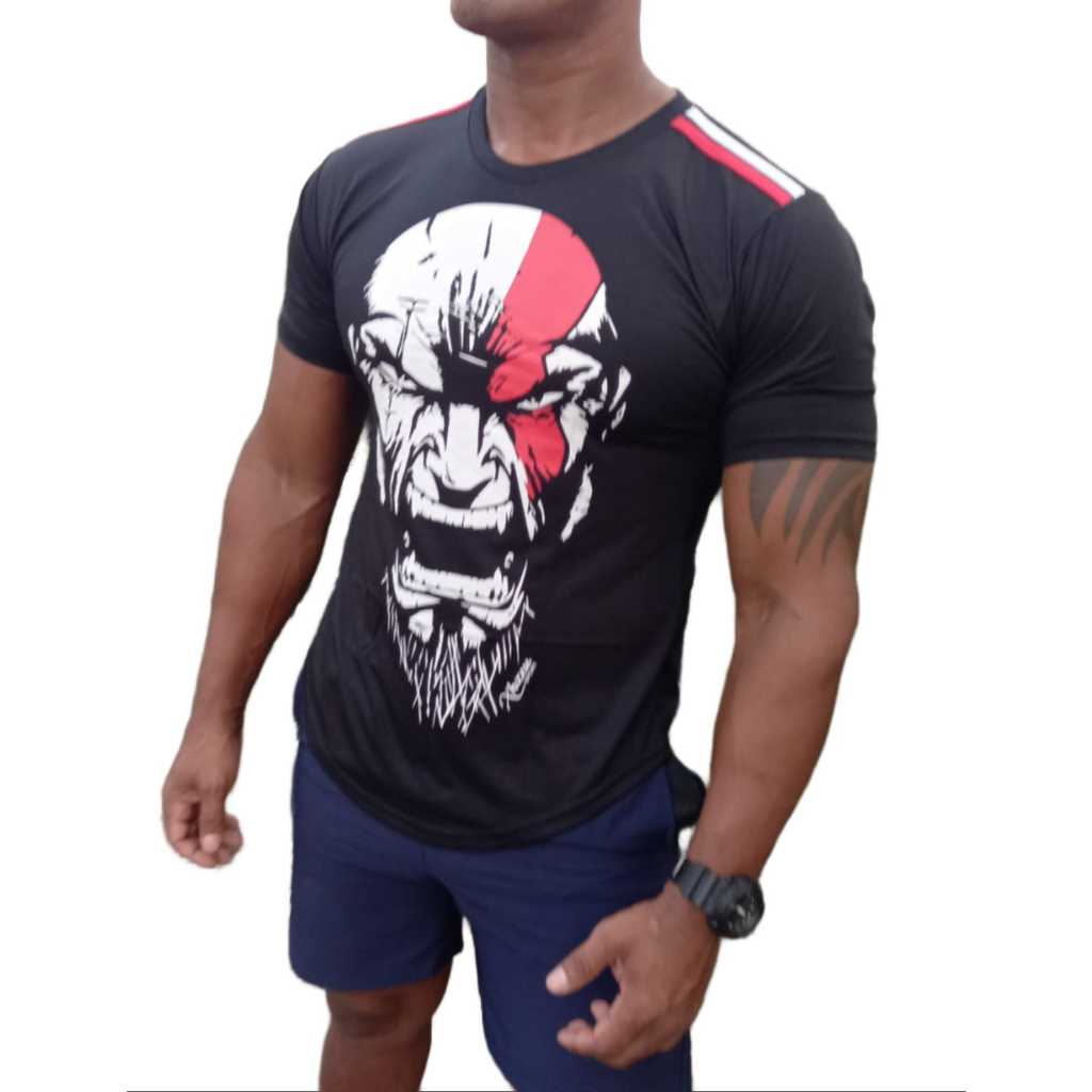 Camiseta Long manga curta Masculina Musculação Esportiva God Of War Gamer kratos