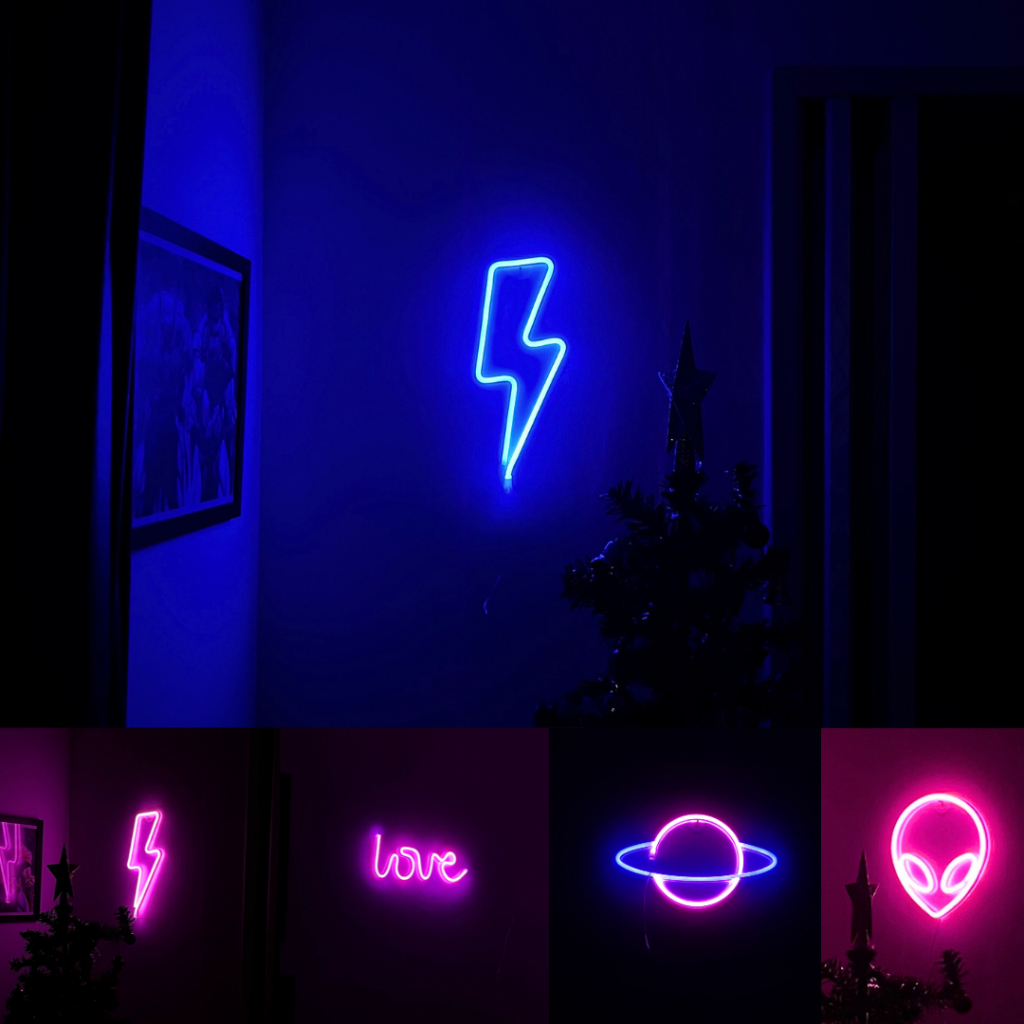 Luminária Placa Led Neon - Letreiro de Luz Parede USB Pilha Love Saturno ET Alien Raio Lightning
