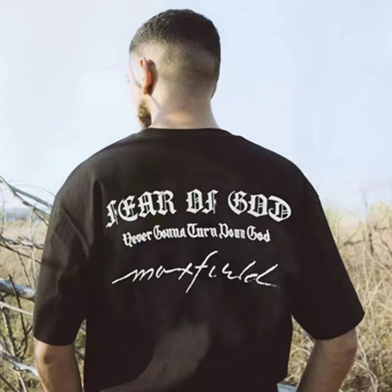FEAR OF GOD FOG Temporada 7 Alfabeto Sânscrito Impressão Gola Redonda Manga Curta Camiseta Casual Solta De Rua